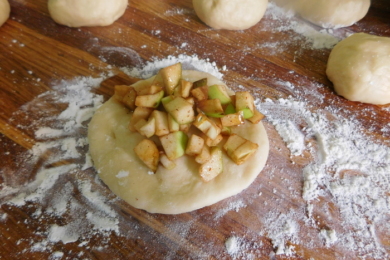Ще раз скажу, що начинка для цих пиріжків може бути будь-якою. Взимку я полюбляю покласти в них заморожену чорницю, полуницю чи вишню. Але найкраще вони мені смакують саме з яблуками.