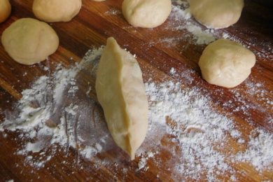 Якщо наше тісто вже піднялося (повинно збільшитися приблизно в два-три рази), приступаємо до процесу створення пиріжків. Особливість цього дріжджового тіста в тому, що ліпити пиріжки з нього – саме задоволення.
