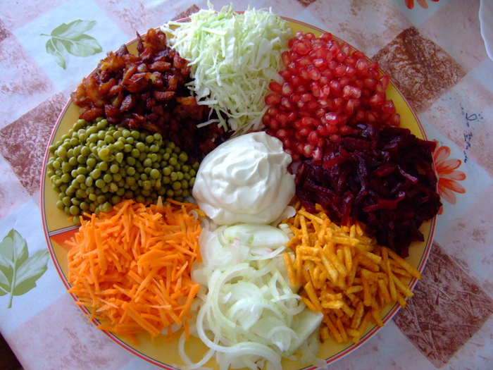 Зазвичай все нарізається соломкою або кубиками, допускається варіант натерти на тертці.