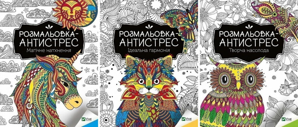 Асортимент розмальовок-антистрес зростає щороку. Цього сезону особливо популярні мотиви природи – квіти, дерева, екзотичні тварини й казкові пейзажі. Для дітей виробники пропонують картинки з улюбленими героями, фантастичними замками чи транспортом, що захоплює навіть найменших.