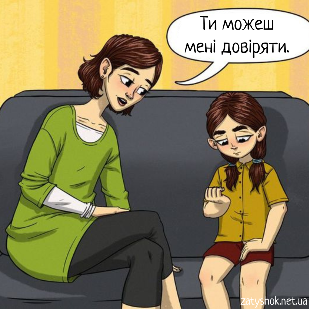 Що робити: не допитуйте. Просто побудьте поруч. Запропонуйте чай, розмову, спільний малюнок. І дайте зрозуміти, що ви готові чути будь-що — без осуду.